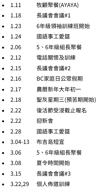 - 上週會眾大會:上週五會眾大會圓滿結束,感謝主! 「過渡期共同主領牧師」運作模式概要,中、英文版本可於大堂司事枱及辦公室索閱。