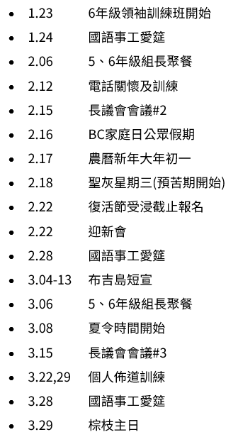 - 親子講座:婚姻家庭部舉辦的親子講座將於 1月31日(星期六)下午 3:30至 5:30在 200號室舉行。主講嘉賓:資深心理治療和遊戲治療師周婉芬博士。講座以廣東話為主,題目:《異鄉教子 ——華人父母在加拿大的親子同行與挑戰》。歡迎有興趣者及親友一同出席。報名:https://forms.gle/nAgPbKpWr8xLaEiS6。