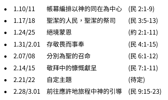 1–6月主題:進入曠野:學習與神同行